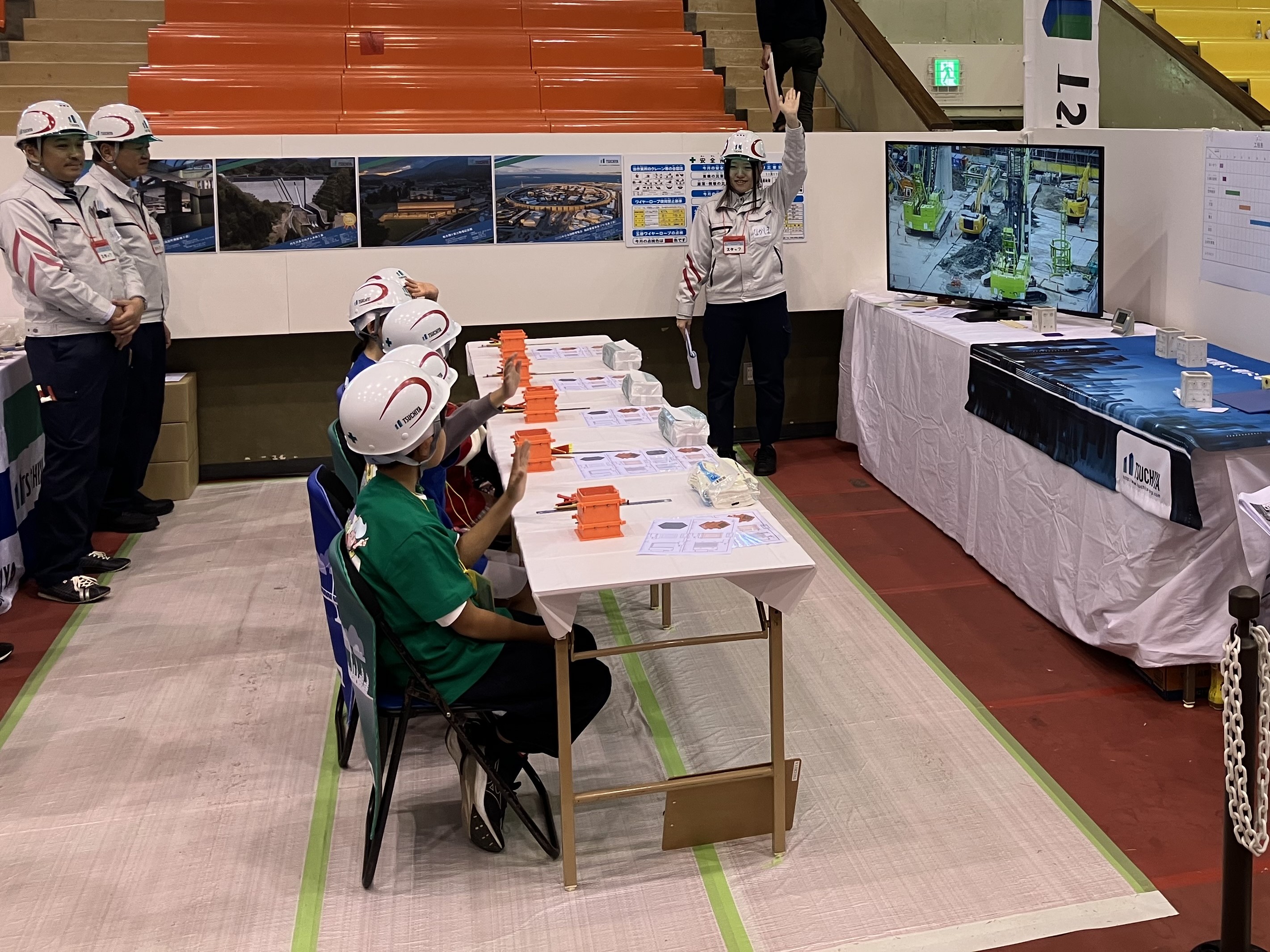 当社の職業体験プログラムでは、普段なかなか触れることのない「建設の仕事」を身近に感じてもらうため、小さなビルの建設に挑戦していただきました。あわせて、当社が施工した構造物の紹介や、実際の現場で行われるコンクリート打設の流れを解説するなど、建設業をより深く理解できる内容を盛り込みました。
