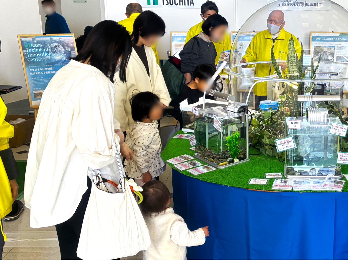 当社の出展内容につきましては、TIC(テクニカルイノベーションセンター)のご紹介をはじめ、環境教育活動、昨年取得した「ぎふSDGs推進パートナー」のご紹介など、SDGsに関連する取り組みをパネル展示にて発表いたしました。加えて、大垣市近隣に生息する生き物25種を水槽にて展示し、地域の美しい水環境と豊かな自然の魅力をお伝えいたしました。