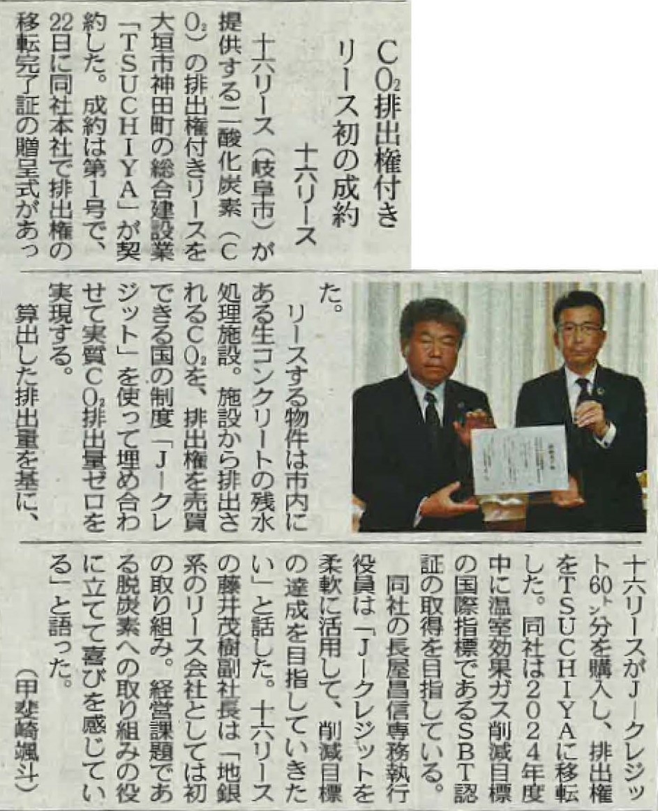この度、当社は十六リース株式会社との間で、温室効果ガス削減に向けた排出権付きリース契約を締結いたしました。
