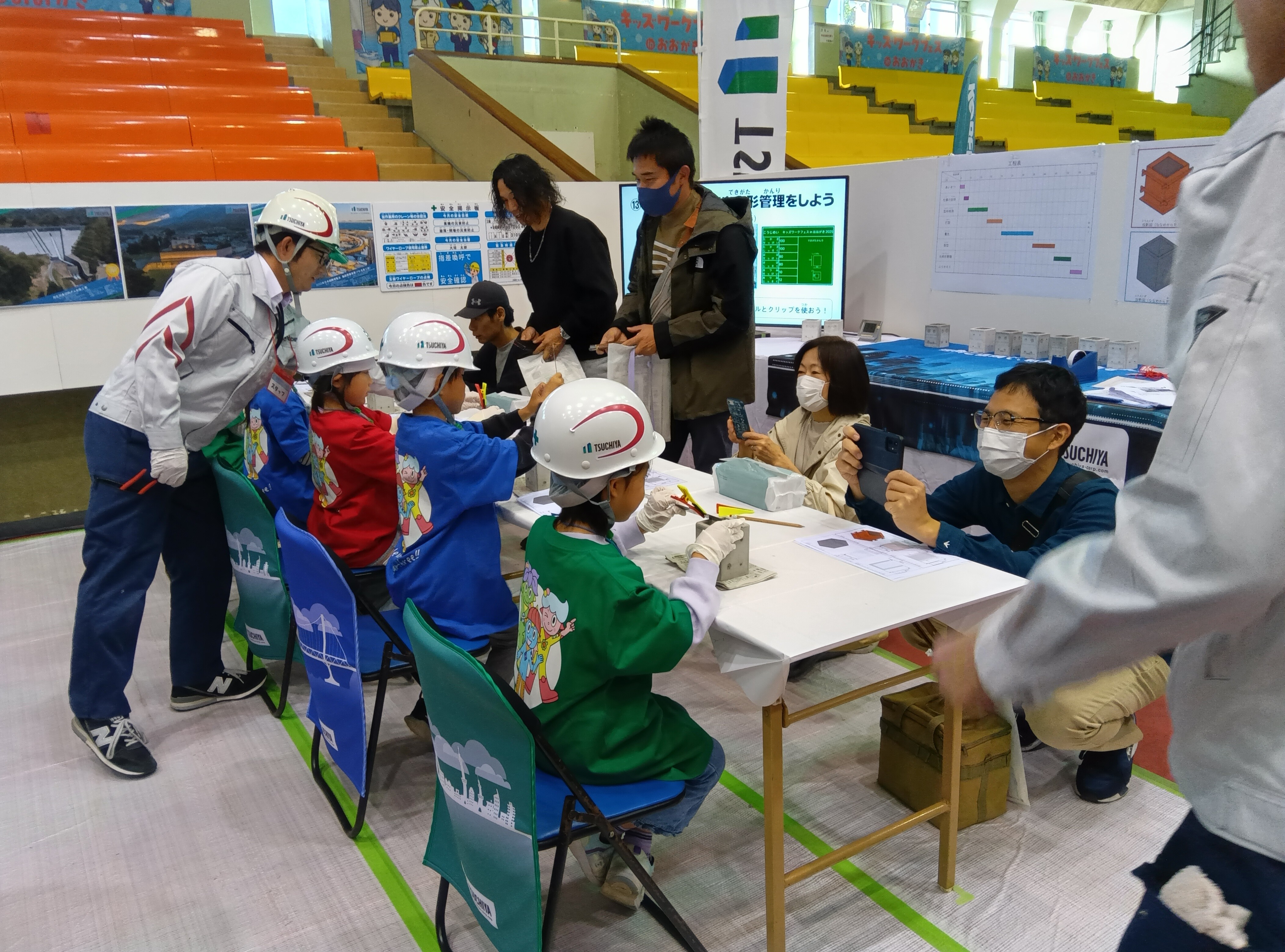また、作業の合間には当社の施工事例も紹介し、大垣駅前交差点にある高屋町横断地下道が50年前に当社が施工したものであることを伝えると、参加者や保護者の皆様から驚きの声が上がりました。