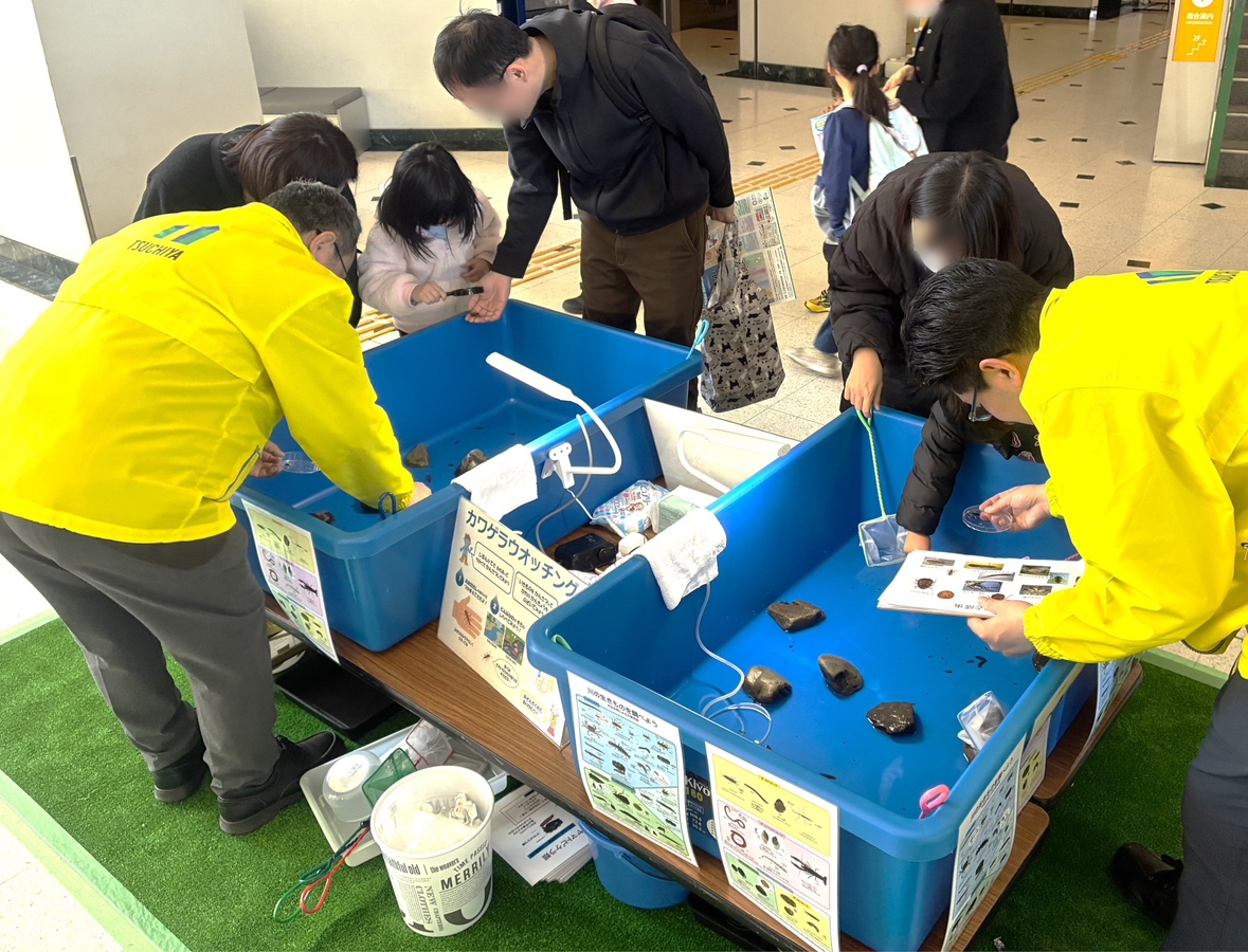 また、土屋環境振興財団が地元の小学校を対象に実施しております「カワゲラウオッチング」を、来場された皆様にも体験していただけるよう、川の生き物に直接触れていただけるタッチプールを設置いたしました。実際に生き物に触れていただくことで、水質の良さを生き物より学ぶ機会を提供いたしました。